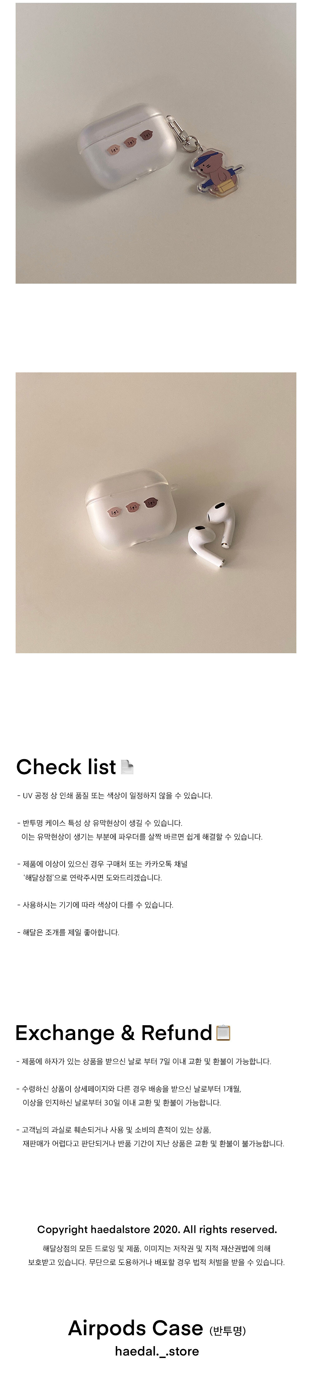 또한 젤리케이스보다 부드러운 재질로 먼지 또는 지문 자국이 남지 않아 에어팟을 더욱 깔끔하게 유지해 줍니다.