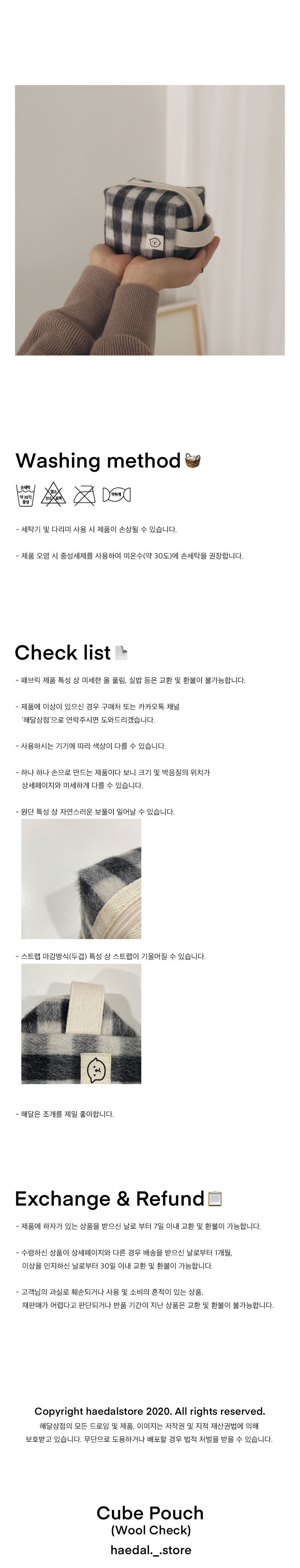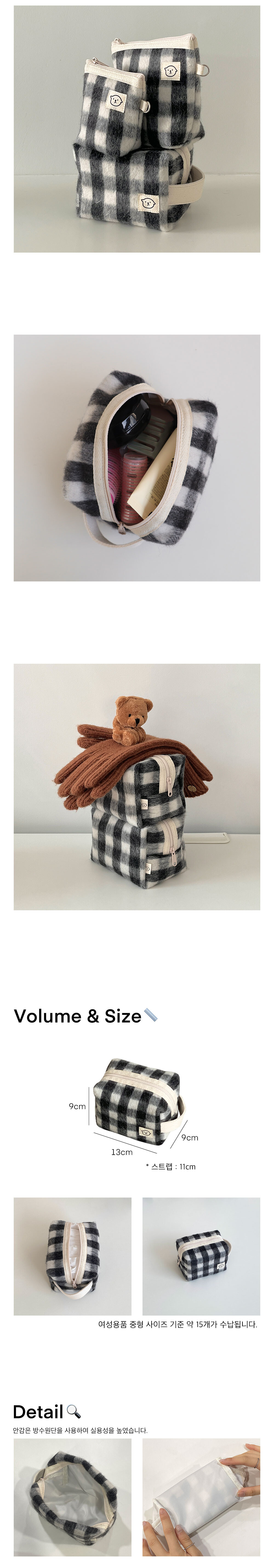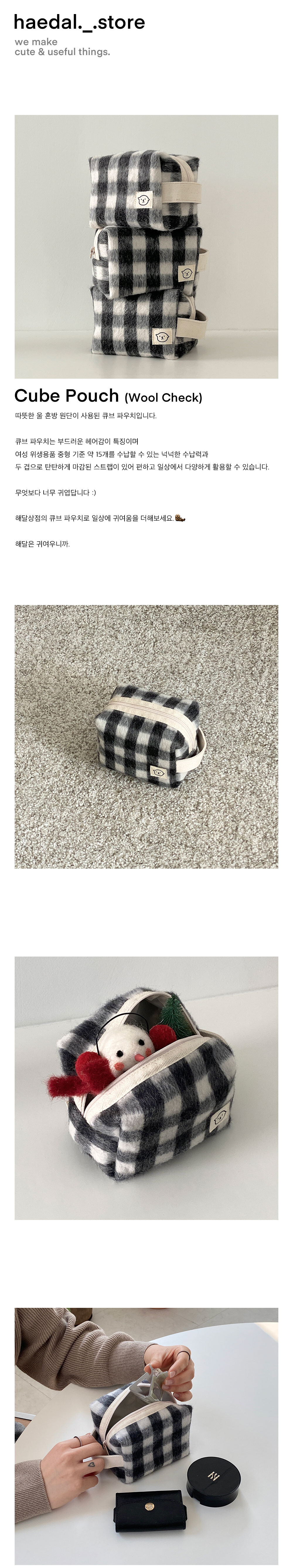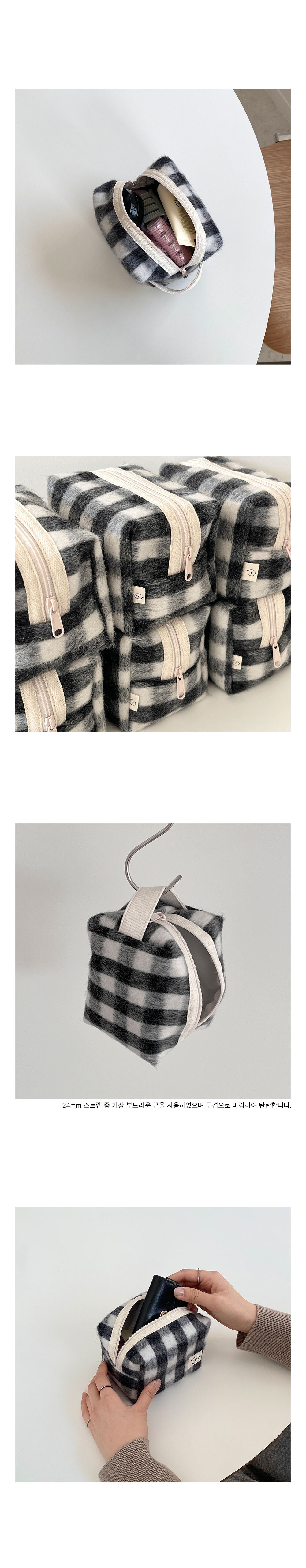 따뜻한 울 혼방 원단이 사용된 큐브 파우치입니다.