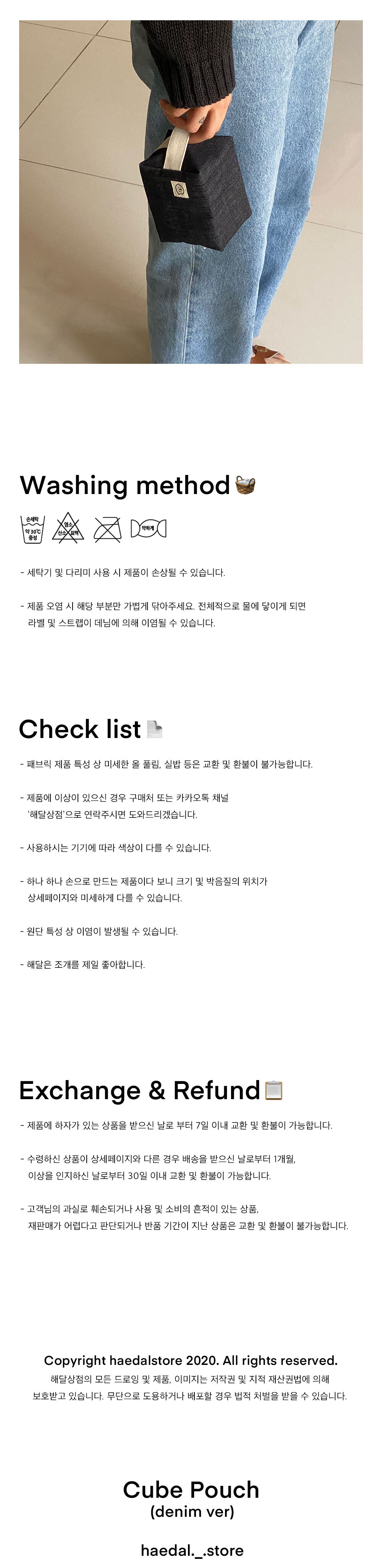 데님 큐브파우치는 실제 의류 원단으로 사용되는