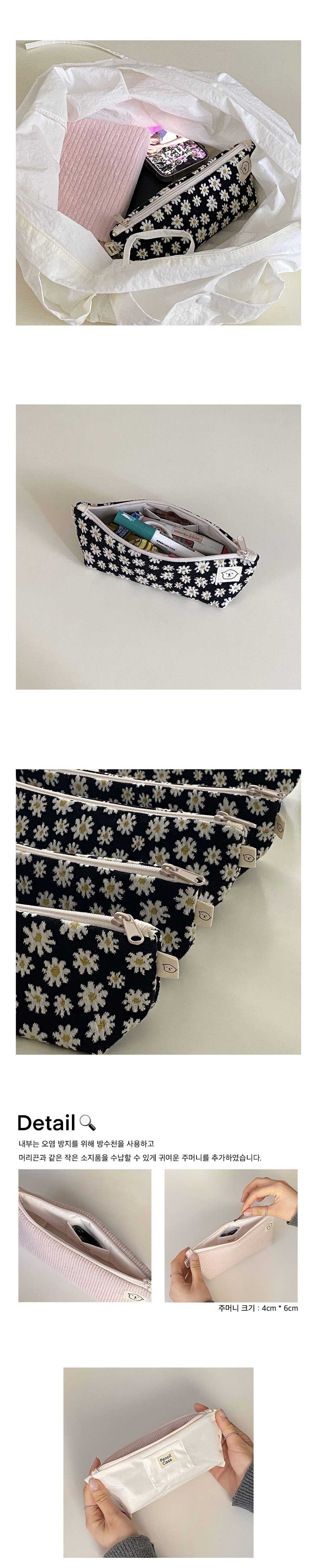 머리끈과 같은 작은 소지품을 수납할 수 있게 귀여운 주머니를 추가하였습니다.